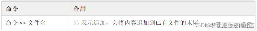 - 通过 命令 >> 文件 将命令的成功结果 追加 指定文件的后面