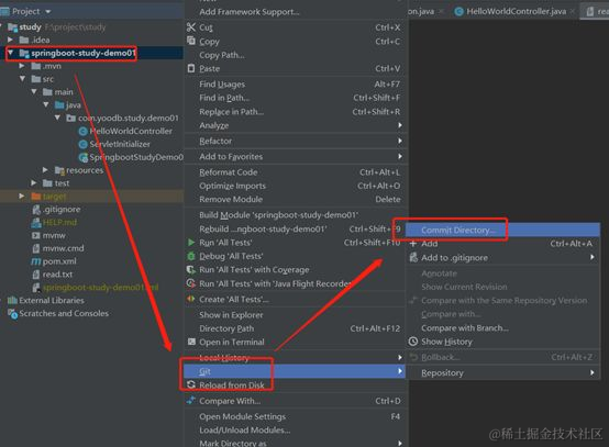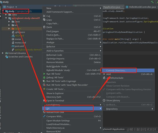 在项目右键-->Git-->Commit Directory,如图所示: