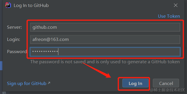 输入在github中注册的用户名和密码,点击“Log In”按钮,登录是否连接成功,如图所示: