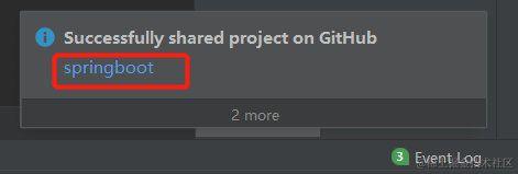 在弹框中输入仓库名和描述,点击“Share”按钮,即可是上传,中间会弹窗输入GitHub的用户名和密码(已输入过用户名和密码并记住的不会再次弹框输入),上传成功后IDEA右下角会给出提示,如图所示: