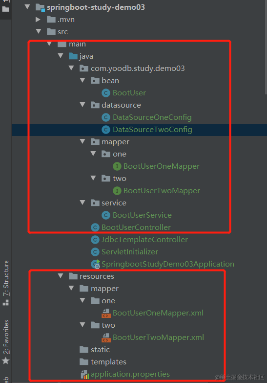数据源二:新增命名DataSourceTwoConfig的java类文件,具体代码如下: