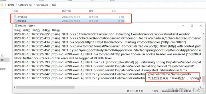 2)logging.file.path,设置目录,会在该目录下创建spring.log文件,并写入日志内容,如:logging.file.path=/workspace/log