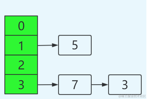 e.next=newTable[3] ----> e.next=7 即:3.next=7