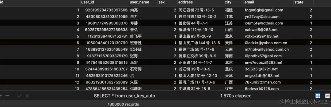 分别是user_auto_key,user_uuid,user_random_key,分别表示自动增长的主键,uuid作为主键,随机key作为主键,其它我们完全保持不变.