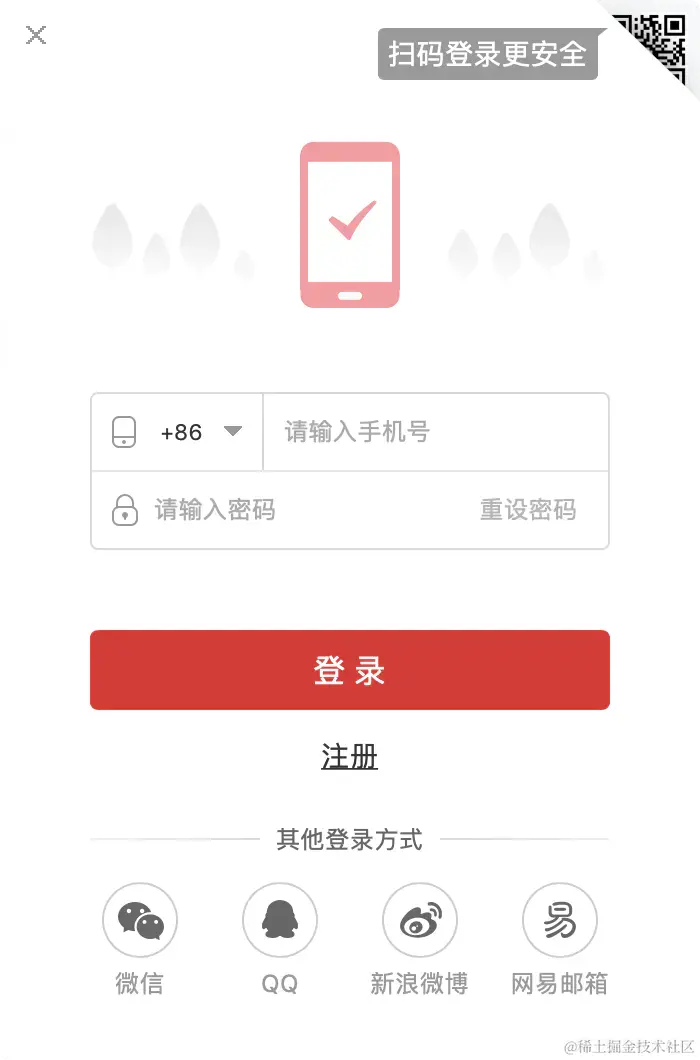 这里看起来没有明确的注册登录操作,其实在发送手机号码就可以认为是一个常规的注册,然后后面的验证码输入就是一个登陆操作,