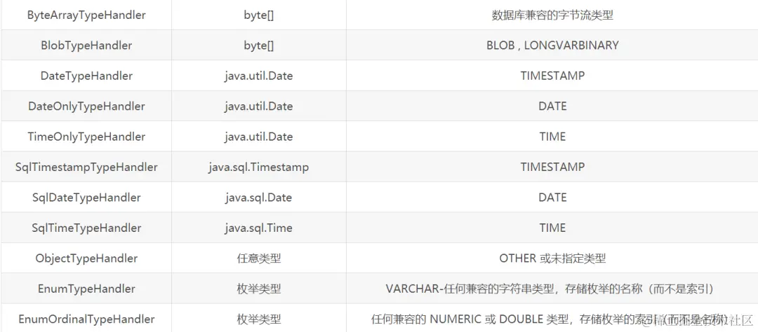 上面是MyBatis提供的默认映射类型,可以处理大部分需求,如果我们需要有不同的需求,则可以自己定义类型,具体如何定义,在后面的文章会单独分析,在这里不展开,感兴趣的可以关注我,留意后续文章。
