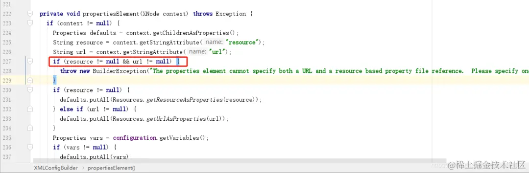 上面我特意分开写,就是怕引起大家的误解,因为resource和url只允许存在一个,不能同时配置两个属性,可以看到源码中的解析过程:同时配置了resource和url会抛出异常。