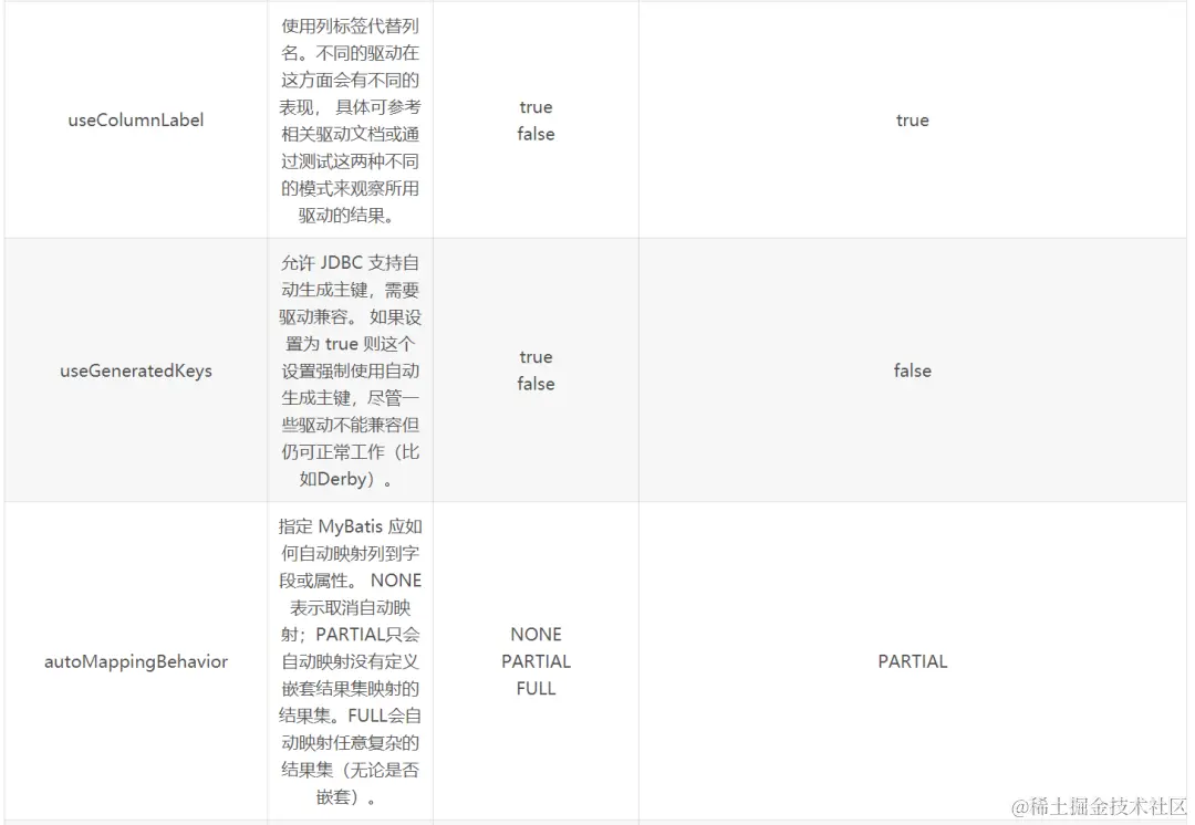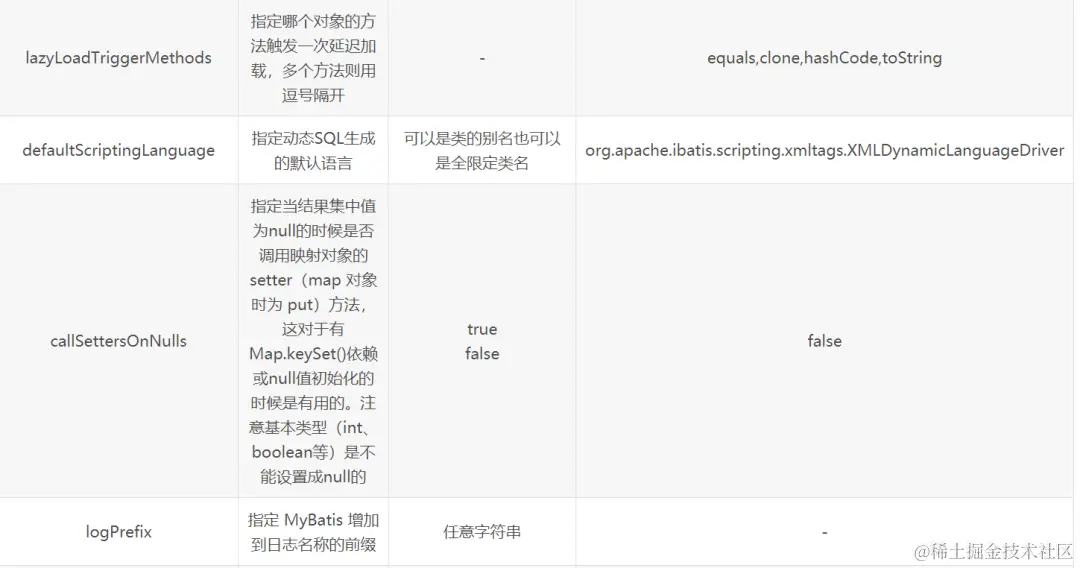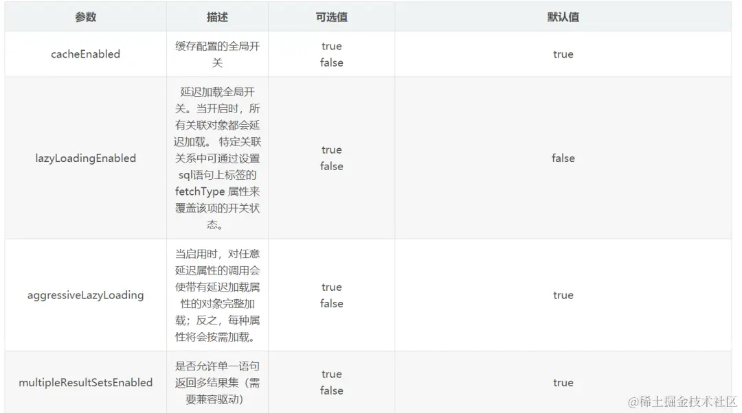 settings是MyBatis中最复杂,也是最重要的内容之一。当然这里说的复杂并不是说配置方式复杂,而是settings能配置的东西非常多,一些很核心的功能都是通过settings标签配置的。下面是一个完整的属性配置示例:
