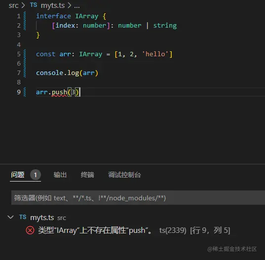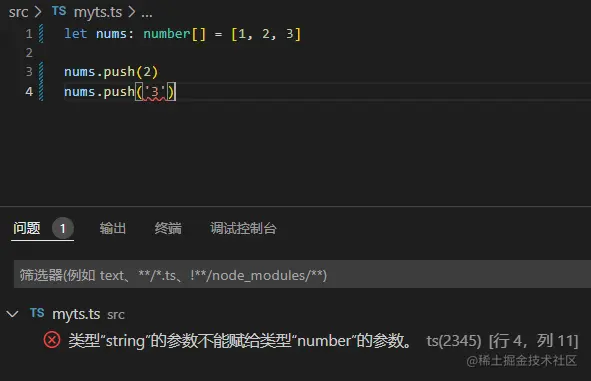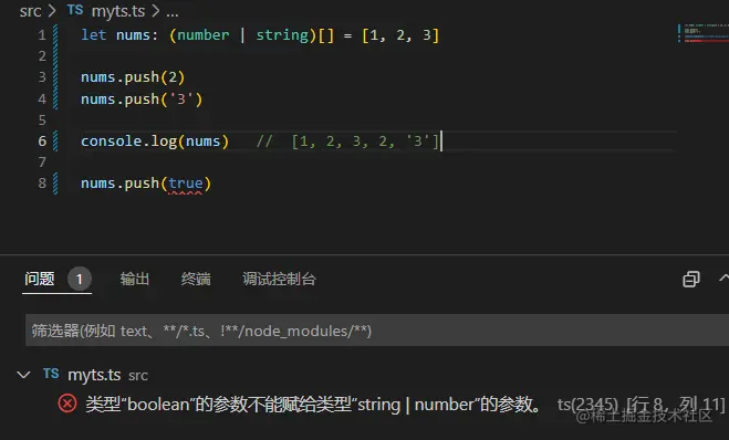 nums.push(true) // 这里报错,因为定义的数组类型里不包括`boolean`类型