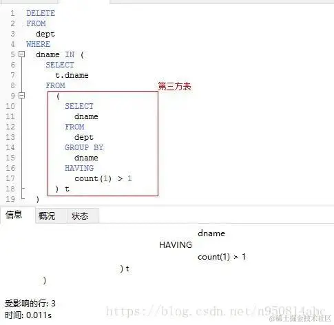 3、查询表中多余重复试题(根据depno来判断,除了rowid最小的一个)