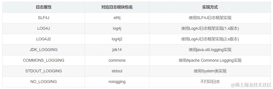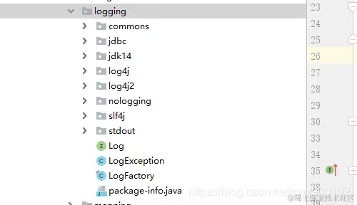 在介绍MyBatis的全局配置文件的时候,我们提到setting内有一个属性logImpl,可以配置的选项有:SLF4J,LOG4J,LOG4J2,JDK_LOGGING,COMMONS_LOGGING,STDOUT_LOGGING,NO_LOGGING。这就说明MyBatis支持六种日志类型(NO_LOGGING是不打印日志)。我们看一下MyBatis的日志模块也可以很明显的看出六种日志类型: