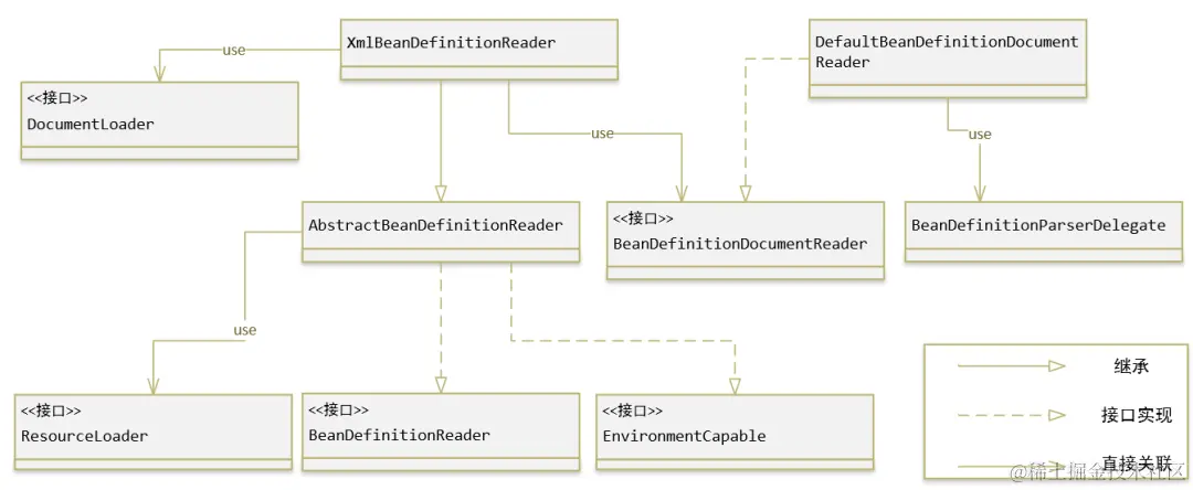 XML配置文件的读取时Spring的重要功能,因为Spring的大部分功能都是以配置作为切入点的,那么我们可以从XmlBeanDefinitionReader中梳理一下资源文件读取、解析及注册的大致脉络。首先我们看看各个类的功能。