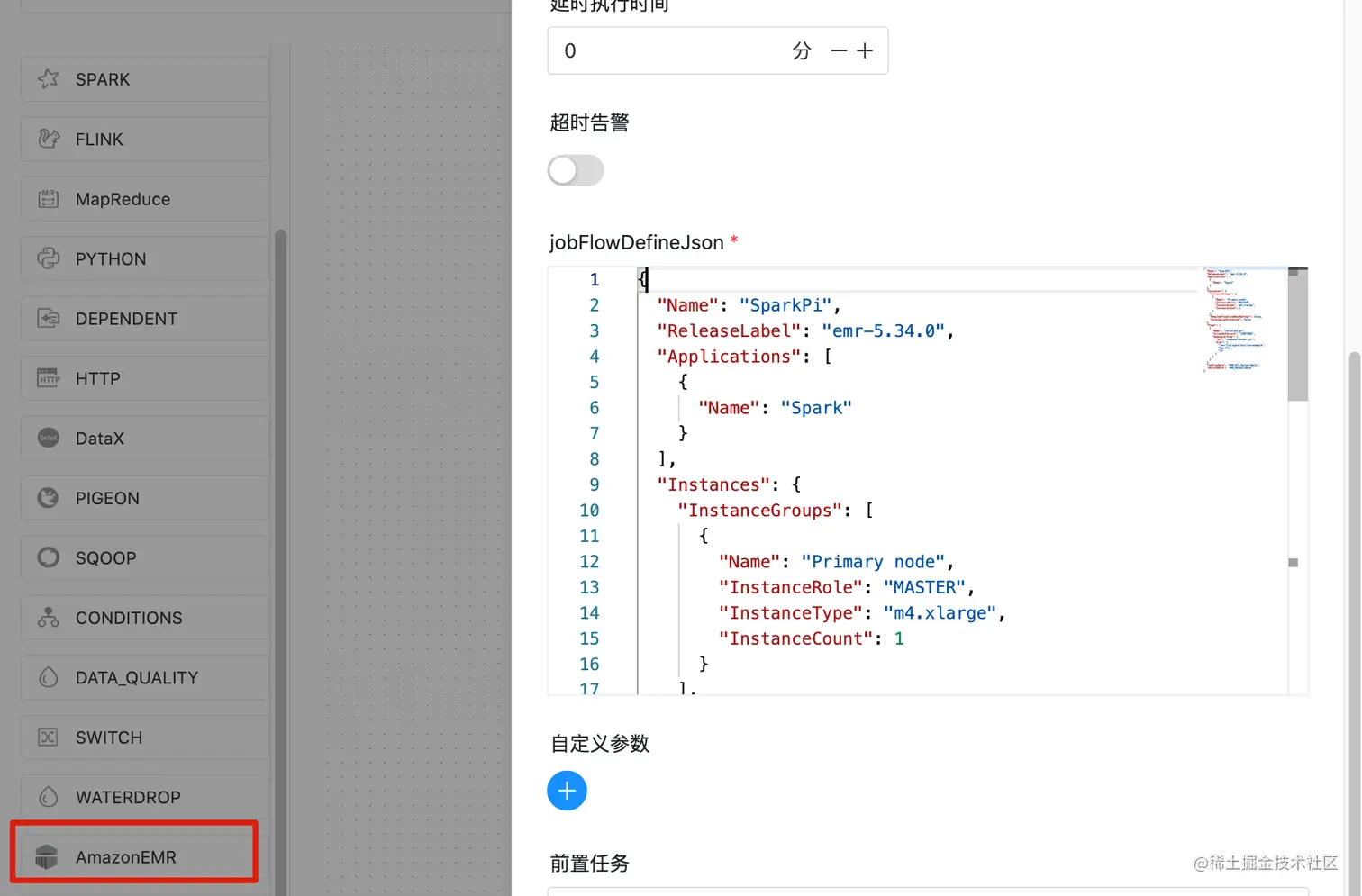 - 针对 Amazon EMR,我们创建了一个新的任务类型,并提供了其 Run Job Flow 的功能,允许用户向 Amazon EMR 提交多个 steps 作业,并指定使用的资源数量。详情可见:dolphinscheduler.apache.org/zh-cn/docs/…