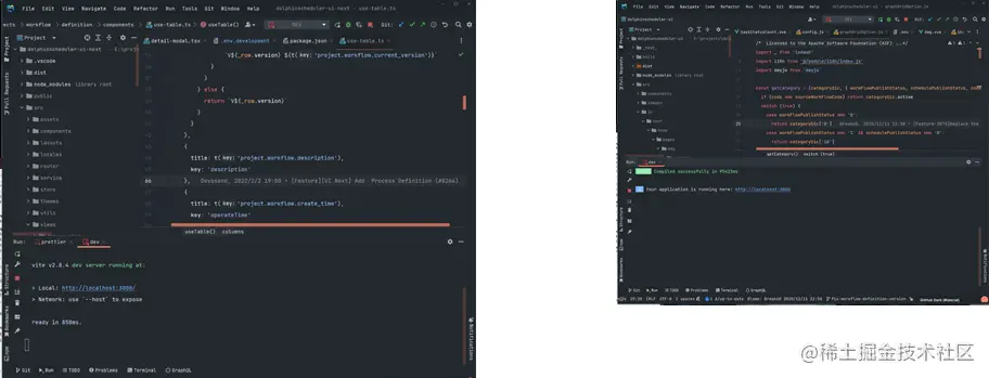 此外,新架构和新技术栈不仅能让用户在操作 Apache DolphinScheduler 时响应速度有数十倍的提升,同时开发者本地编译和启动 UI 的速度有了数百倍的提升,这将大大缩短开发者调试和打包代码所需的时间。