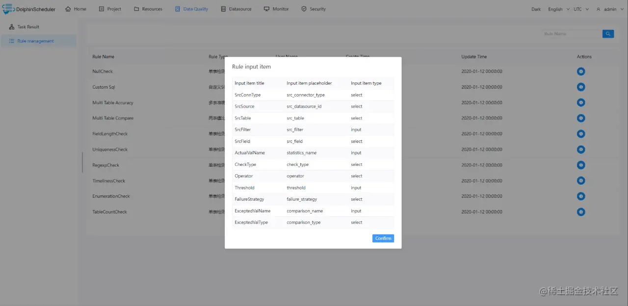 现在,3.0.0-alpha 已经实现了数据质量原生支持,支持在工作流运行前进行数据质量校验过程,通过在数据质量功能模块中,由用户自定义数据质量的校验规则,实现了任务运行过程中对数据质量的严格控制和运行结果的监控。