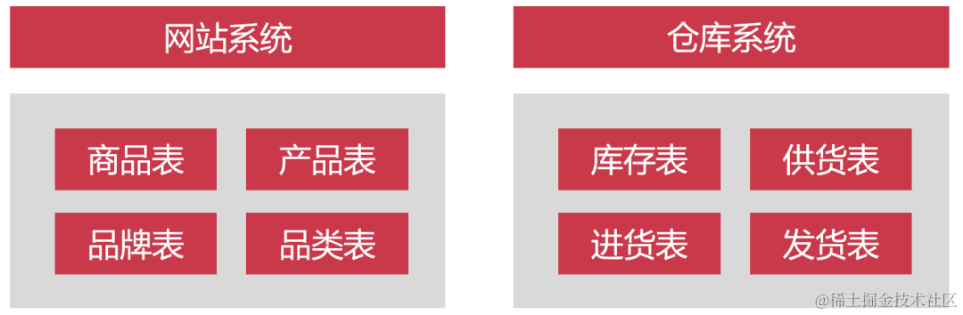 比如说一个新零售的电商数据库,我们可以把跟商品相关的数据表拆分成一个数据库,然后在这些数据表的基础之上,构建出商品系统。比如用JAVA或者PHP语言,创建出一个商城系统。然后把跟进销存相关的数据表拆分到另外一个数据库上,再用程序构建出仓库系统。