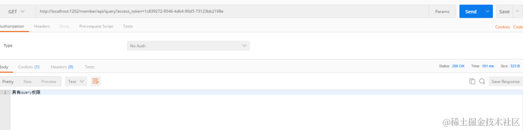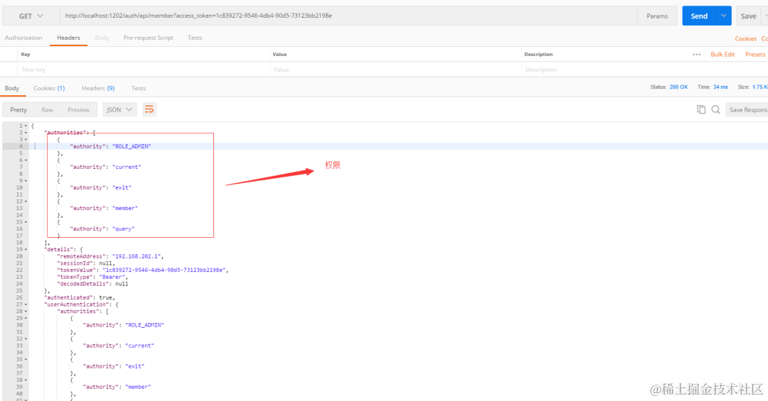 请求member服务的hello接口,数据库里并没有给用户hello权限