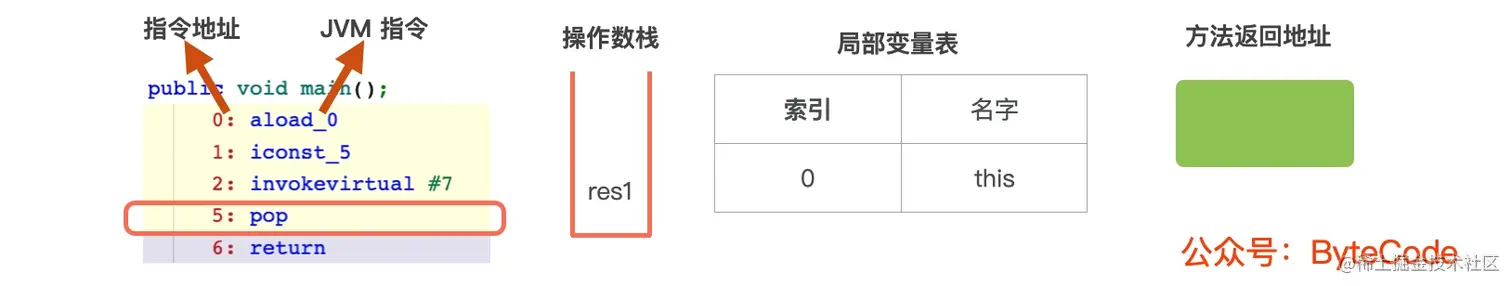main中,执行最后一条指令5: pop,操作数栈中的元素出栈
