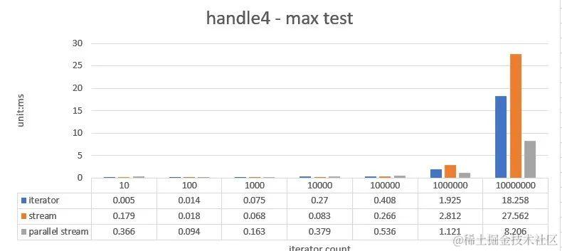 获取一个随机数列(List<Integer>)的最大值,测试的随机数列容量从 10 - 10000000,跑10次取平均时间;