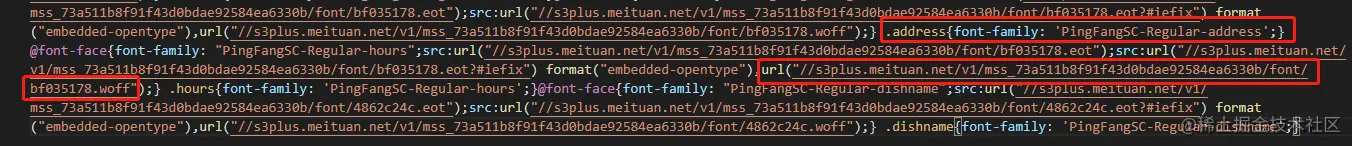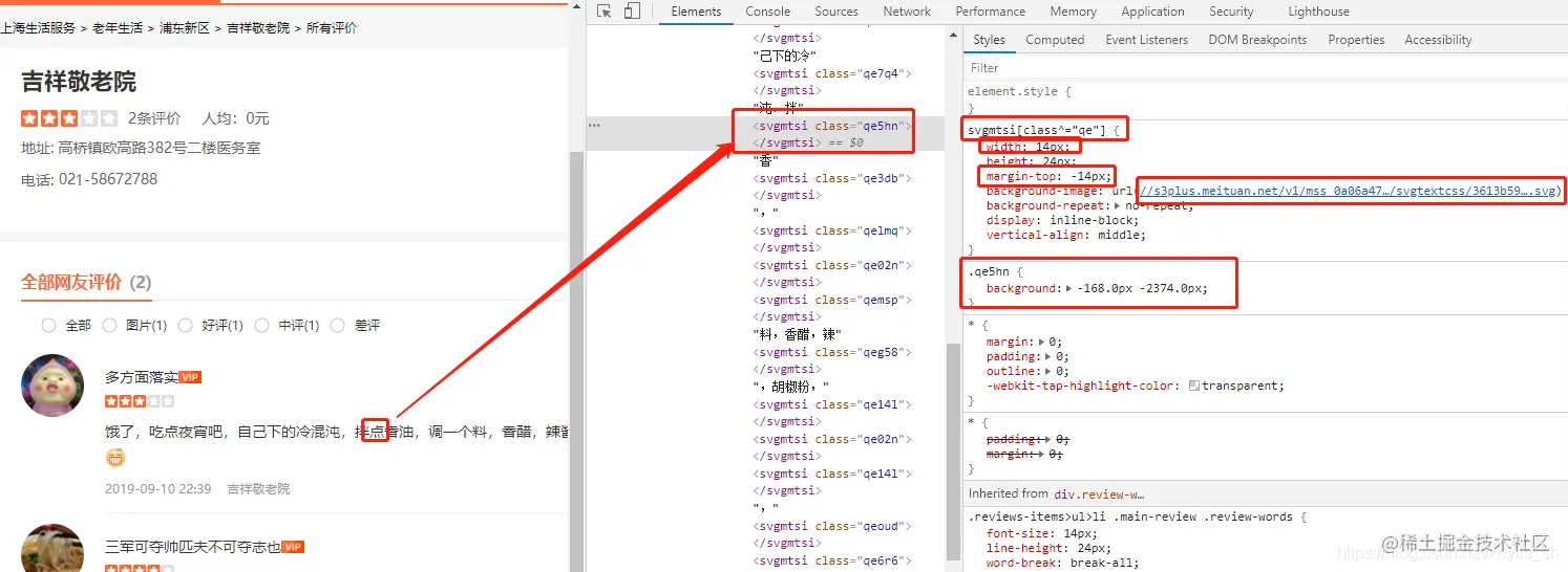 这里可以获得某个店铺的所有评论,采用的是svg文件加css背景定位法,相对第一种简单但变换的更快,记住下面红框的内容,后面要用到