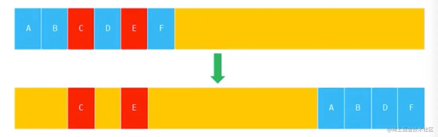 - 标记合并(Mark Compact) Mark Compact 将存活的对象移动到一边,将需要被回收的对象移动到另一边,然后对需要被回收的对象区域进行整体的垃圾回收