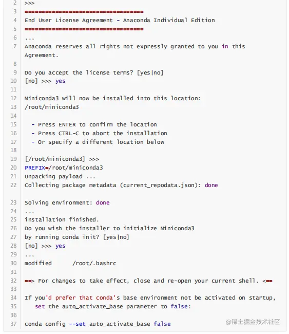 效并自动激活miniconda,如果我们不希望自动激活可以在重启后执行: