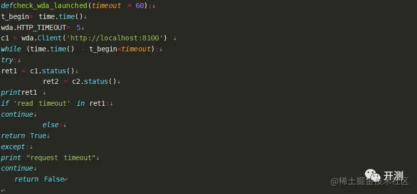 测试WDA是否启动成功可以通过操作命令是否超时来判断: