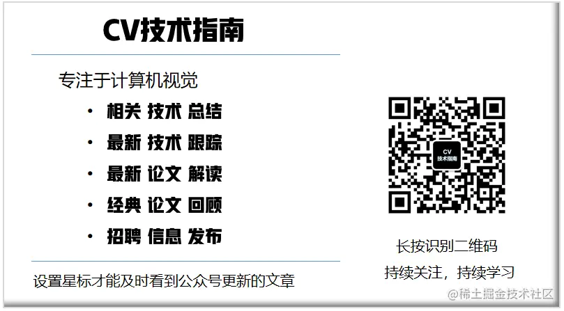 欢迎关注公众号CV技术指南,专注于计算机视觉的技术总结、最新技术跟踪、经典论文解读、CV招聘信息。
