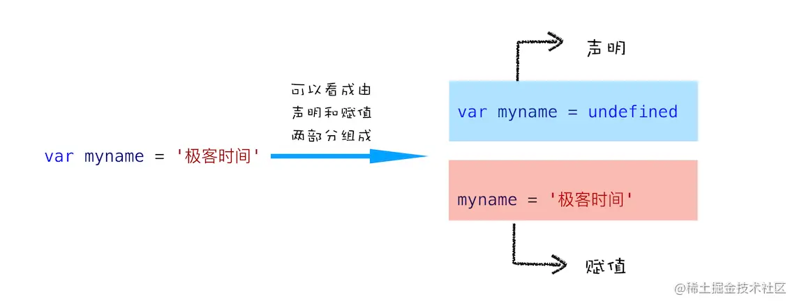 myname = '极客时间' //赋值部分