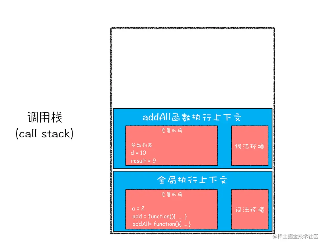 为了搞清楚这个问题,我们还是回过头来看上面那段模拟变量提升的代码,为了方便介绍,可以把这段代码分成两部分。