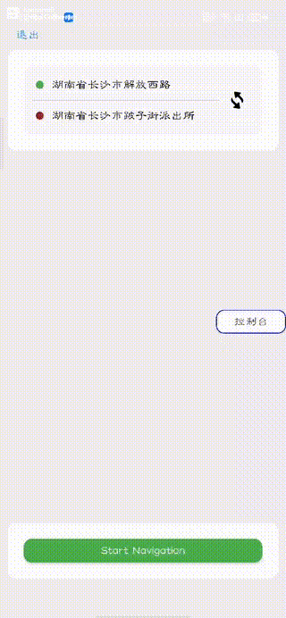 功能描述:首先通过将输入的地址转为经纬度形式,然后通过百度地图导航API进行算路节点计算,然后完成导航规划