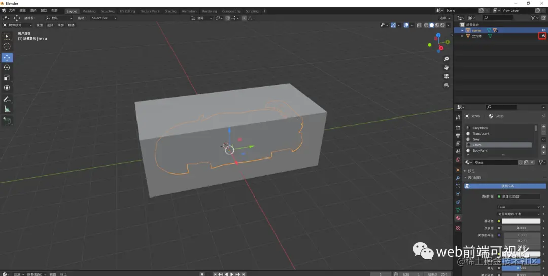 将立方体调整到覆盖模型外围的大小,导出为glb格式。