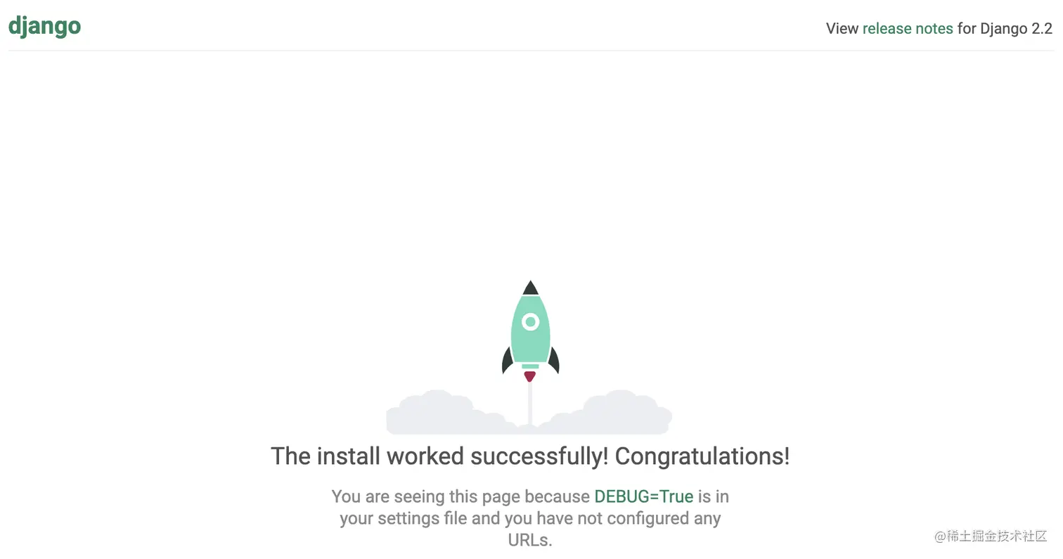 如果您现在在命令行上运行 python manage.py runserver 并导航至 http://127.0.0.1:8000/ ,则可以看到我们的项目已成功安装。