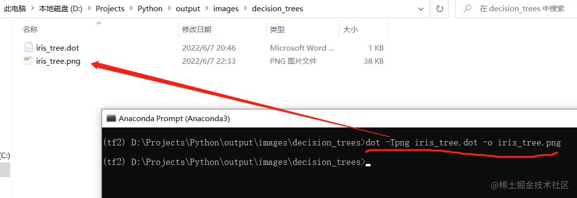 接下来我们进入anaconda prompt,进入我们的虚拟环境下,我这边是tf2,然后cd到我们dot文件保存的地址下,执行以下命令: