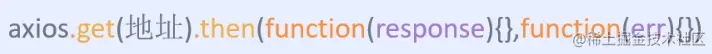 首先是get请求,地址就是文档提供的接口地址,然后点then方法,它内部传递的第一个回调函数会在请求响应完成之后触发,第二个函数会在请求失败的时候触发。他们的形参可以用来获取信息,一个是服务器响应的内容,一个是错误的信息。