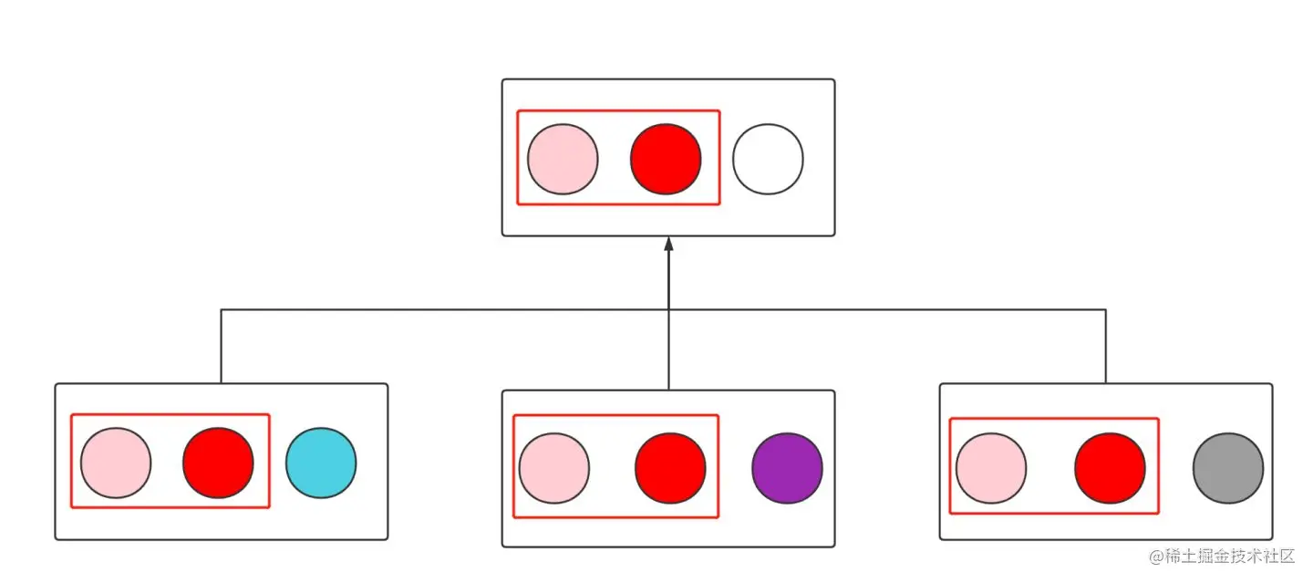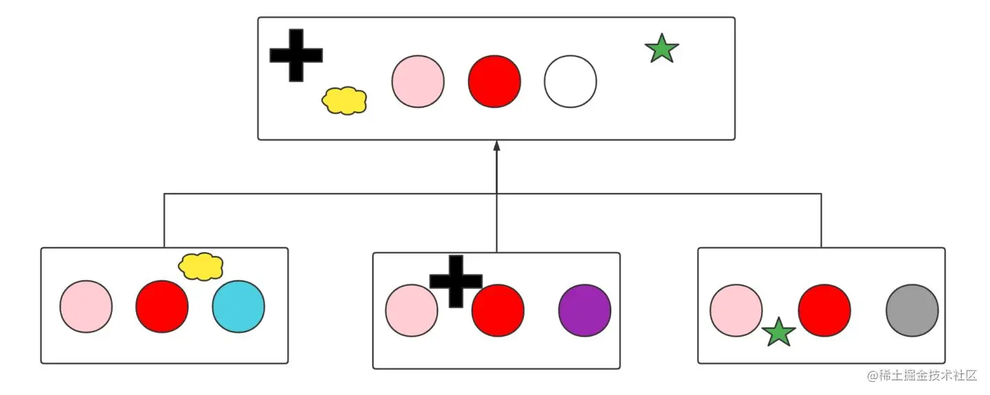 下图中我们把方块当成类,把圆形当成属性或者方法。如图所示三个类拥有共同的属性跟方法(粉色圆圈与红色圆圈),这个时候为了代码复用,通常的做法是将公共的部分提取出来。这个时候问题就来了,父类中的方法实现,是实现成蓝色,紫色还是灰色?