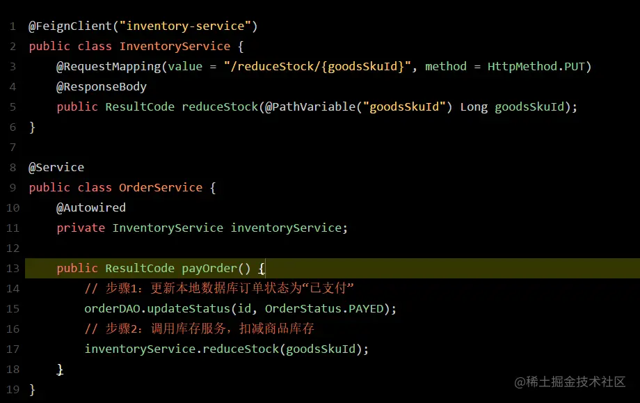 既然如此,那怎么办呢?别急,Feign早已为我们提供好了优雅的解决方案。来看看如果用Feign的话,你的订单服务调用库存服务的代码会变成啥样?
