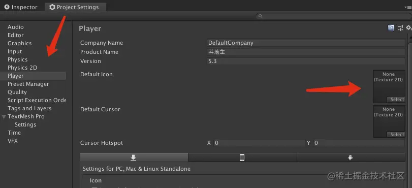 工程为Android平台,想修改游戏图标,点击了 Project Setting --> Player --> Default Icon