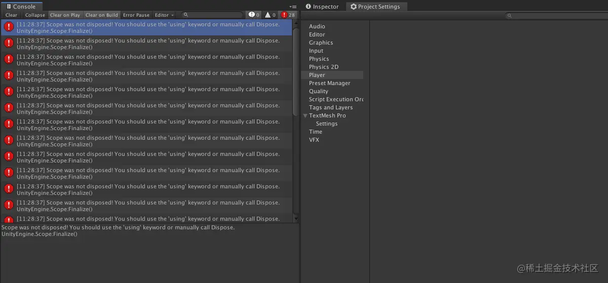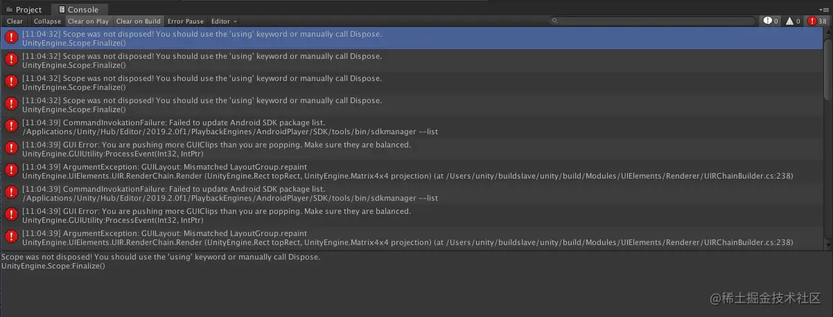 Unity 报错之 Scope was not disposed! You should use the 'using' keyword or manually call Dispose.
