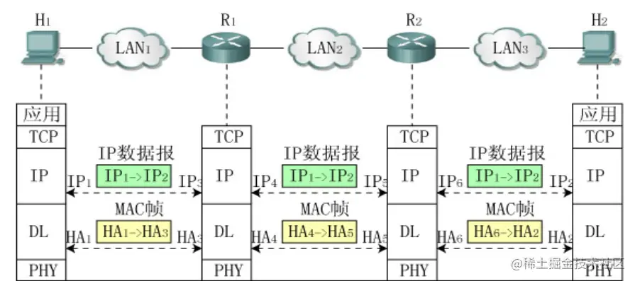 6.在每个网络内部,都要把IP地址转换成MAC地址。