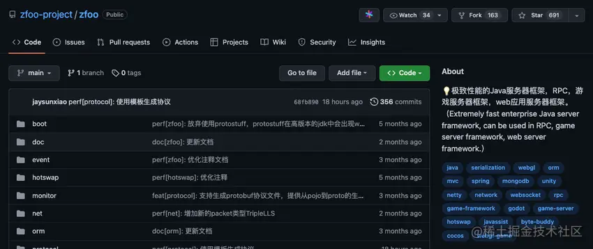 Github 地址:github.com/zfoo-projec… 。