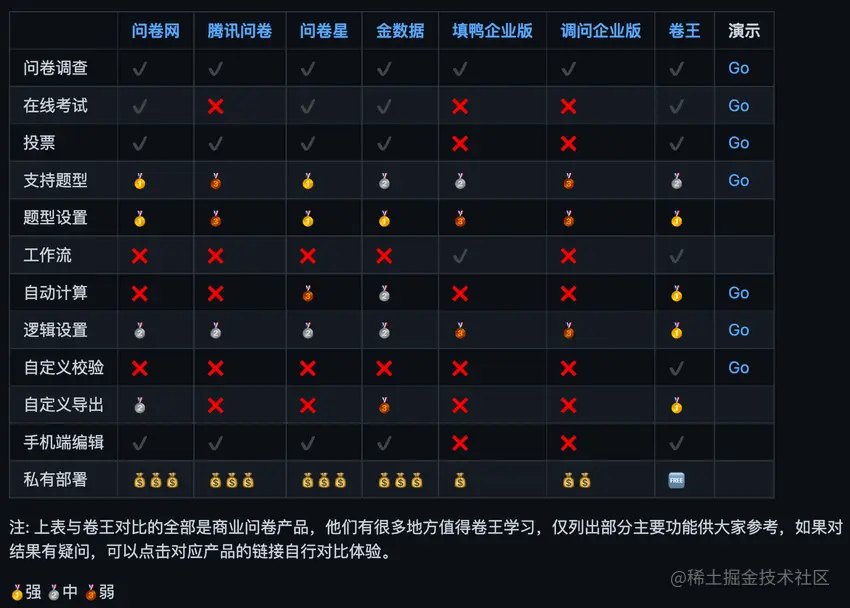 下图是 SurveyKing 与其他常见的问卷产品之间的对比: