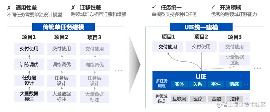 图 2:传统方案 vs UIE 统一建模方案