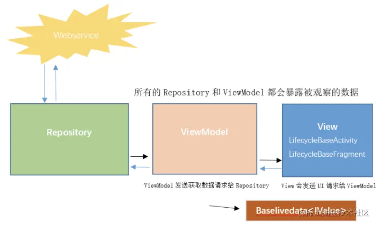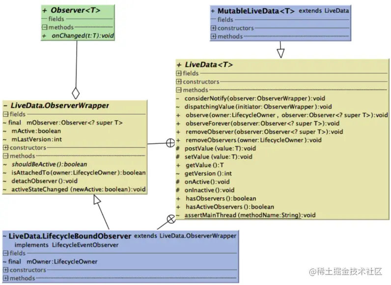 在实际的MVVM场景中,最常使用的是ViewModel和LiveData的API,比较通用的方式是ViewModel持有一个或多个LiveData,也就是需要我们开发者设计出这两个组件的聚合关系。而Lifecycle组件,则是在调用LiveData的addOberver()方法时用到的,这个方法需要传入一个LifecycleOwner对象,LifecycleOwner作为一个接口,是Lifecycle组件的重要组成部分。