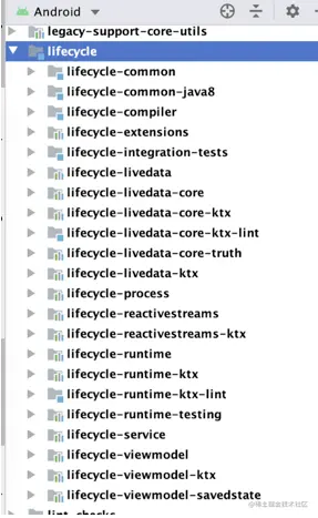 如图,Lifecycle、LiveData和ViewModel三大组件的代码都在lifecycle包下。