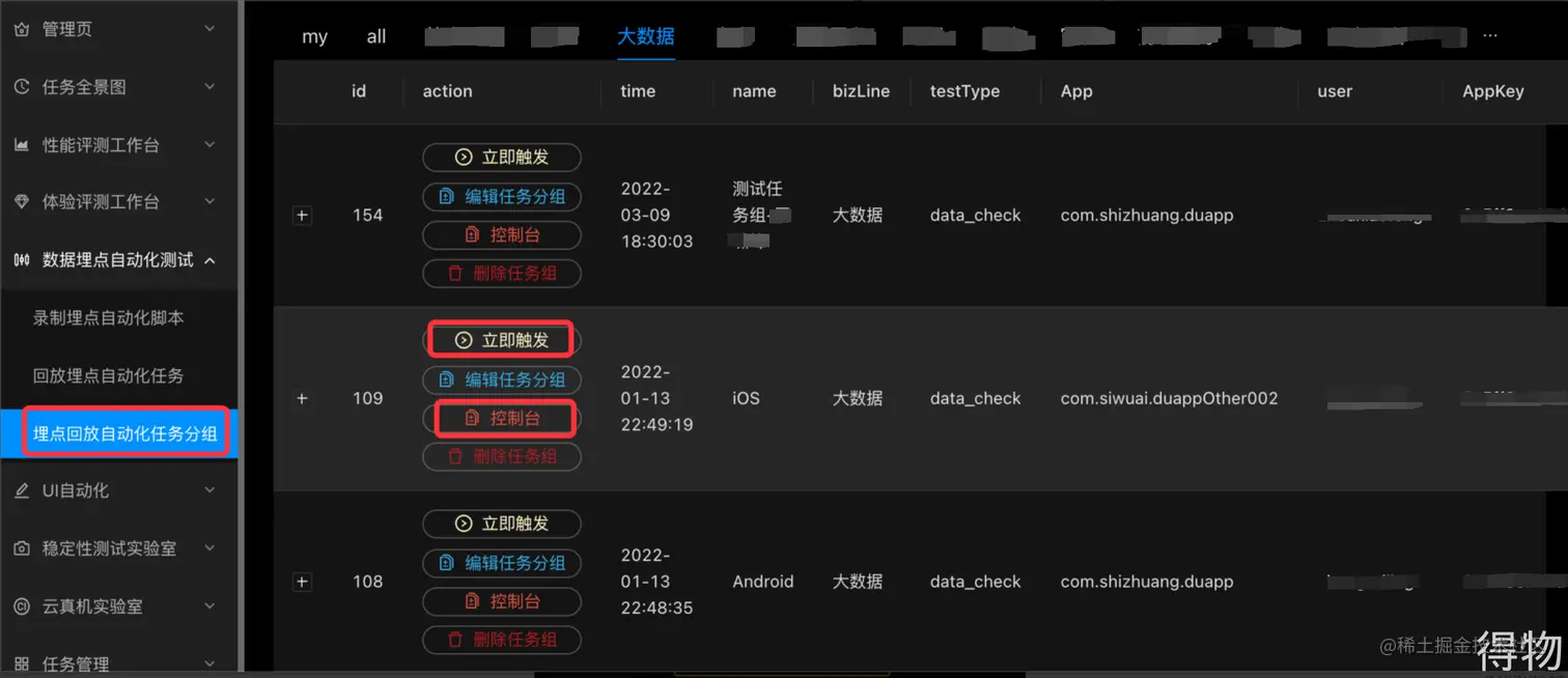 - 测试记录:自动化回归的产物,即录制到的所有埋点数据。