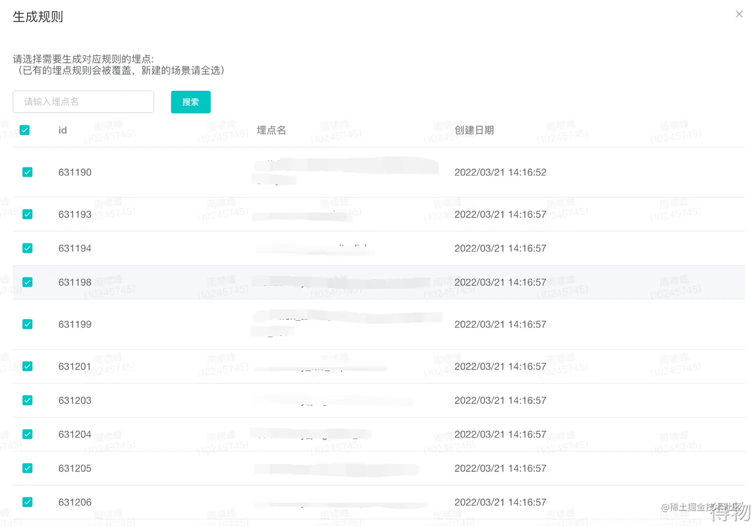 - 通常一个测试用例中的埋点都有几十个,因此推荐在构建场景时直接从测试记录生成默认规则。