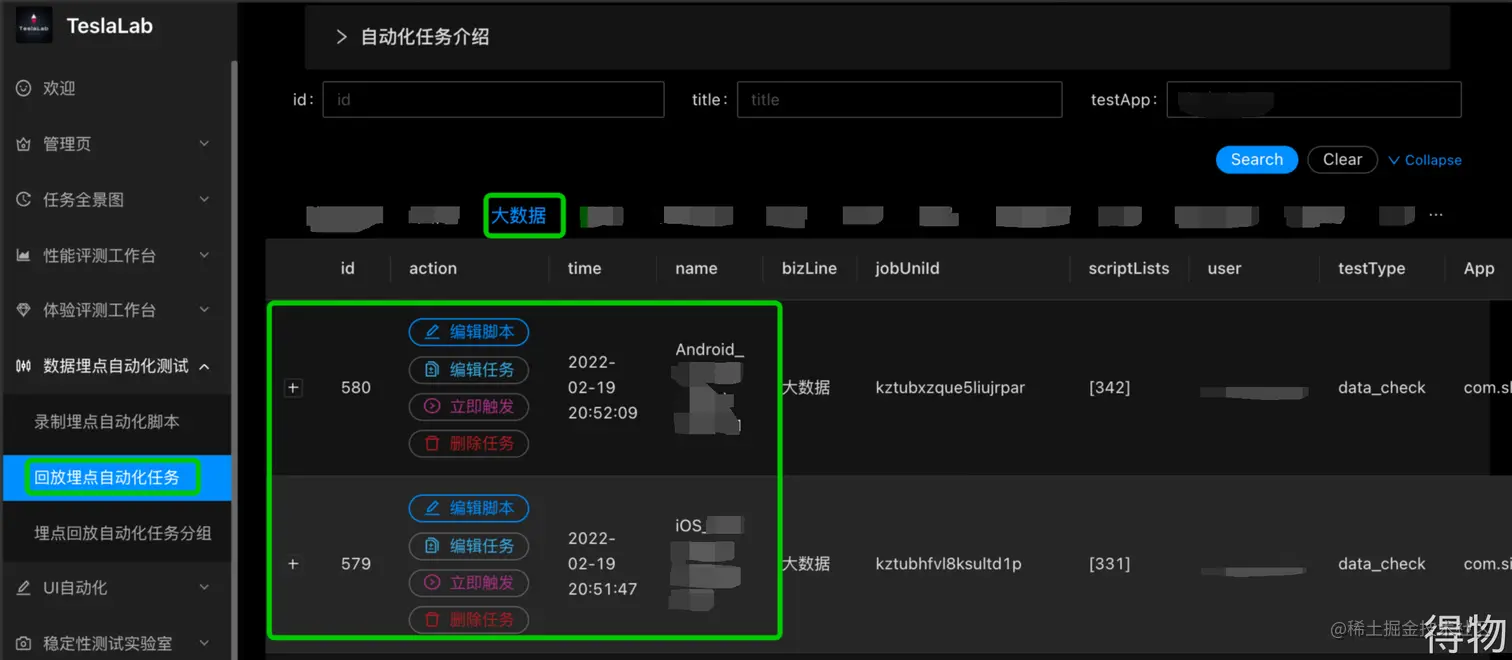 埋点自动化依赖 「Tesla-lab 」 的自动化模块,其中数据Mock 记录的录制和UI自动化 脚本的录制依赖 「Tesla-lab」 本地编辑器,任务和任务组的定时执行依赖 「Tesla-lab」 任务调度模块,任务的实际执行依赖 「Tesla-lab」 任务执行器。