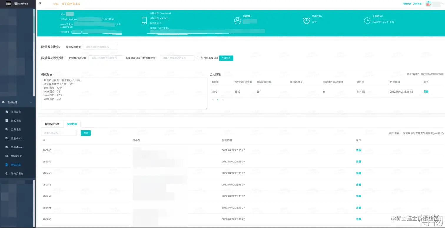 - 验证报告:即测试记录和测试场景的结合产物,包含了所有异常埋点的具体异常信息。