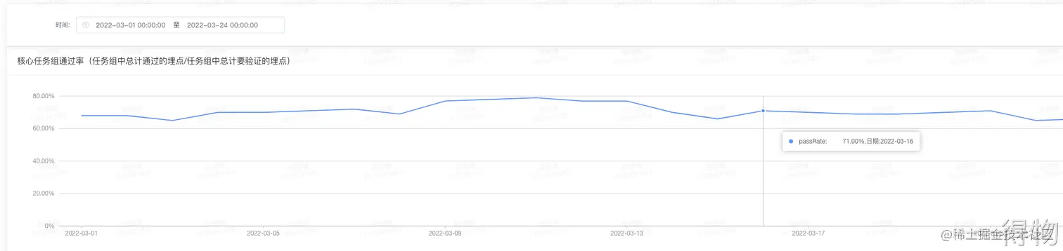 - 任务组通过率:指任务组中所有测试记录中没有异常的埋点总数之和(去重)占所有埋点总数之和(去重)的百分比。